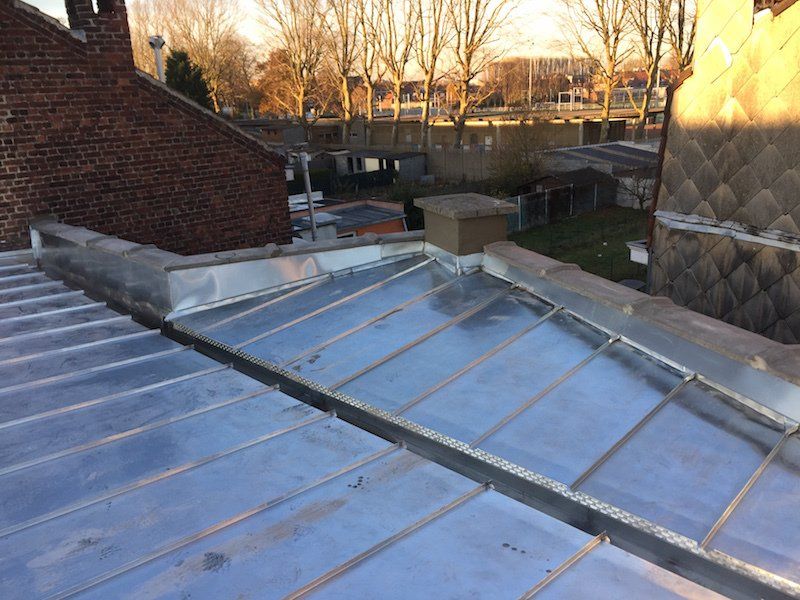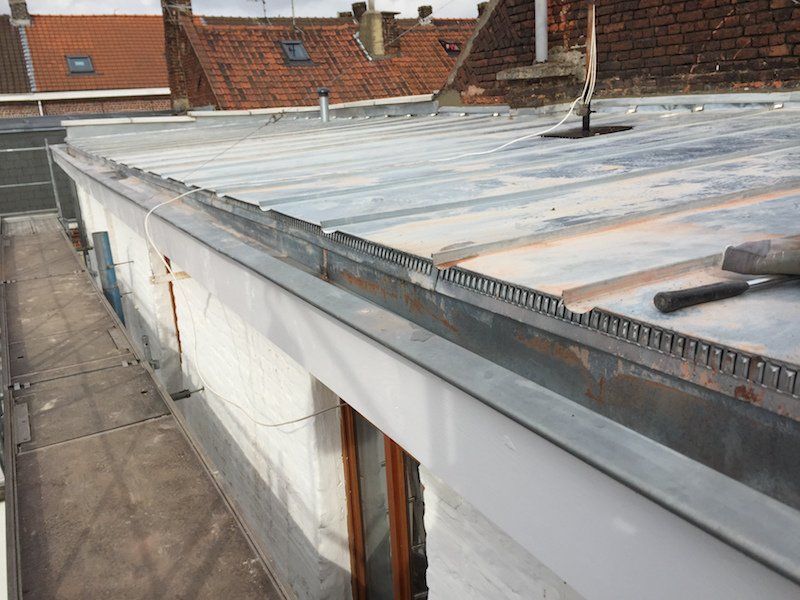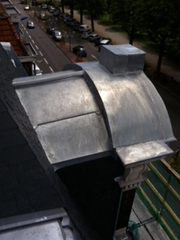Chéneau zinc avec plate-forme en étanchéité Rhépanol